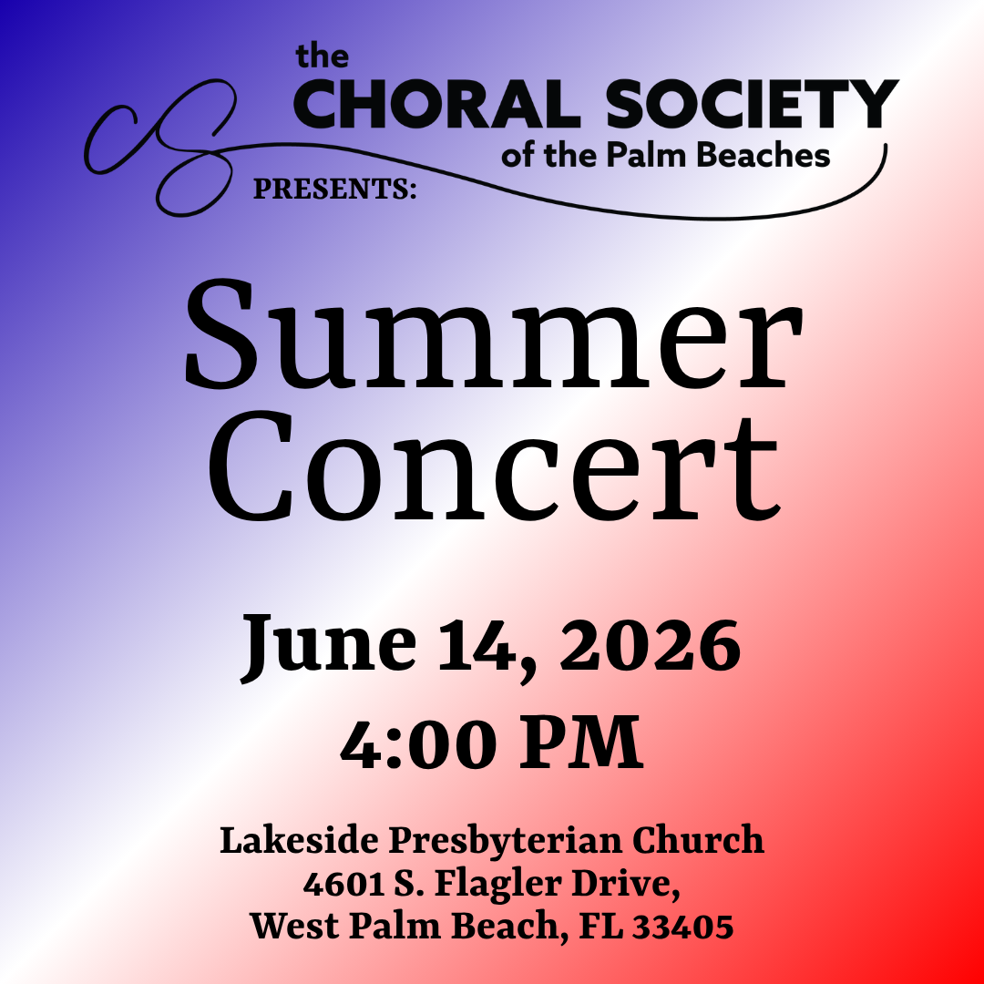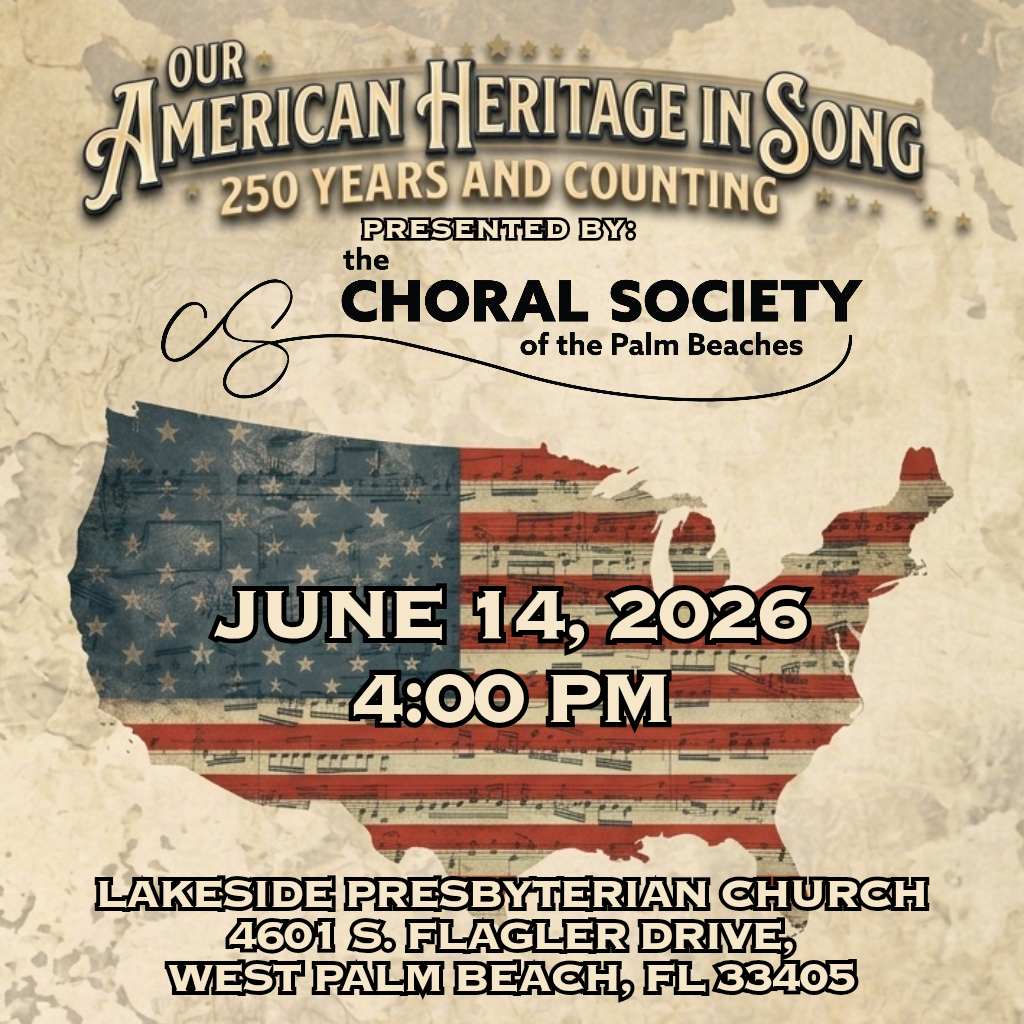This special choral concert celebrates our nation’s 250th anniversary and will feature over 250 voices from The Ebony Chorale, The Choral Society of the Palm Beaches, Masterworks Chorus of The Palm Beaches, The Robert Sharon Chorale, and Espressivo.