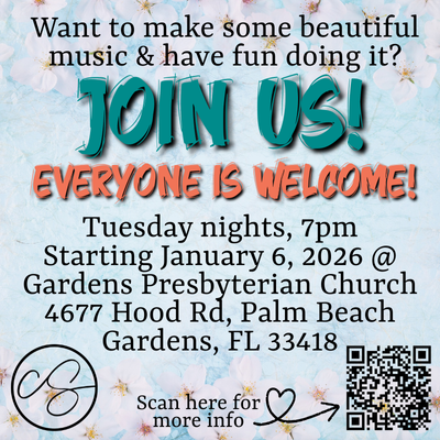 Join us as we start off the Spring season! Practices start January 6th, 7 PM at Gardens Presbyterian Church & continue each Tuesday evening.